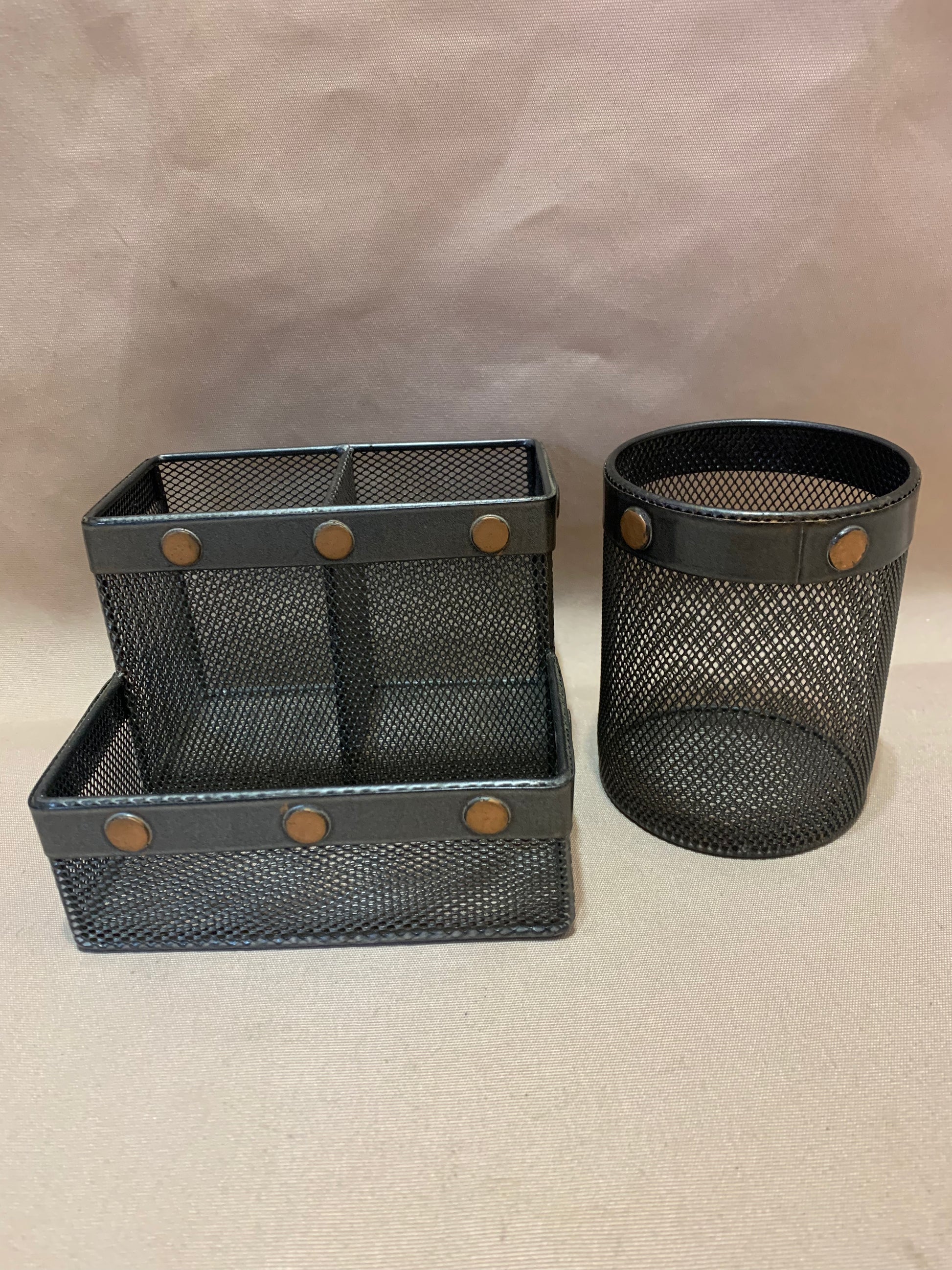 Keep your workspace streamlined with this sophisticated black metal mesh desk organiser set. Featuring multiple compartments and sleek minimalist design, it accommodates pens, papers, and small office essentials while maintaining a professional aesthetic. The durable mesh construction provides visibility of contents at a glance, making organisation effortless. Perfect for home offices, corporate desks, or creative workspaces, this set combines functionality with contemporary style to elevate your productivity environment.