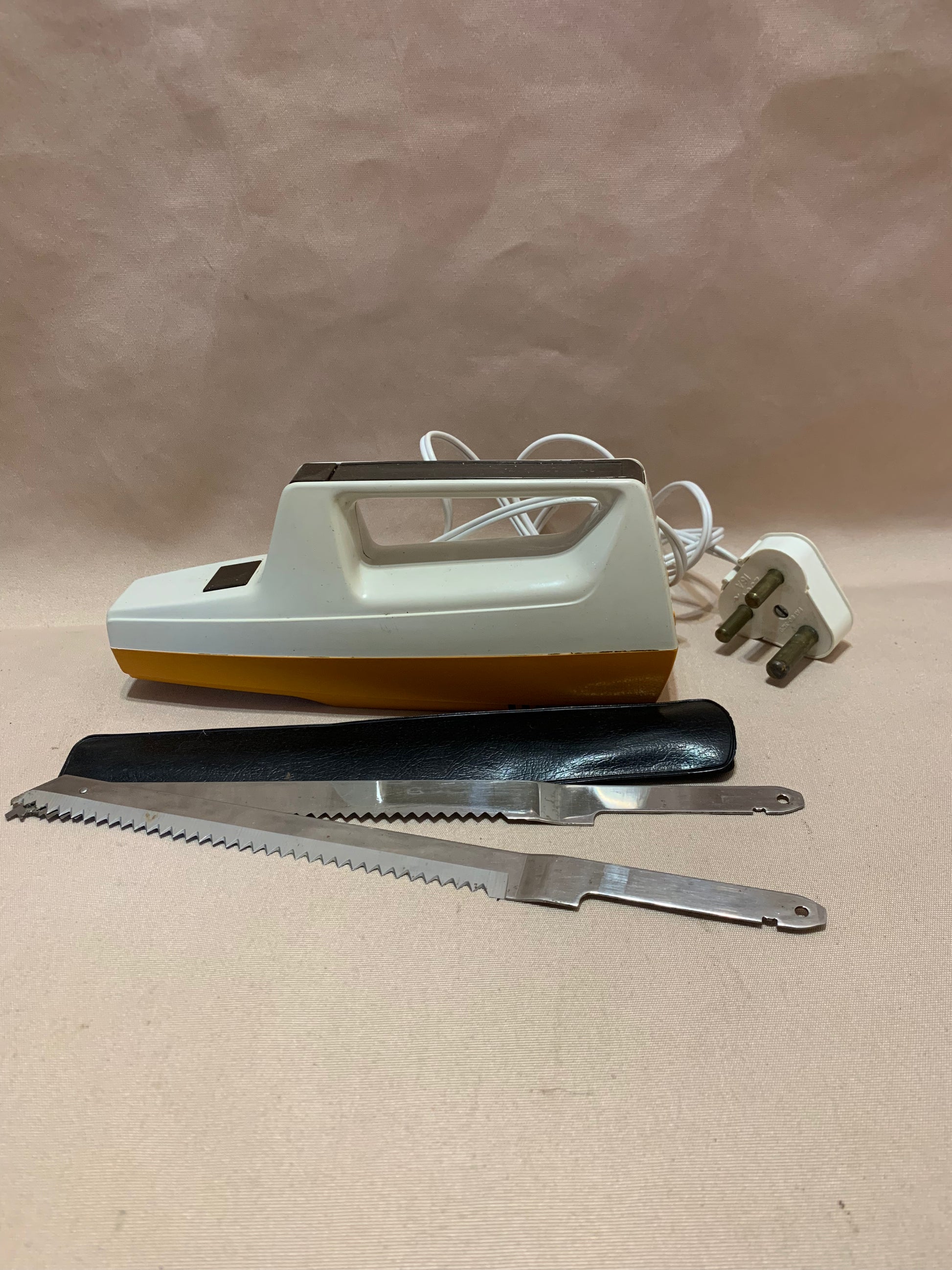 Elevate your culinary presentation with this distinguished vintage Moulinex carving knife, a testament to French engineering excellence. Featuring freshly installed blades that deliver precision cuts through roasted meats and poultry, this classic tool combines timeless design with renewed functionality. The ergonomic handle provides confident control, while the sharp, durable blades ensure clean, professional results every time. A refined addition to any kitchen, whether for everyday use or special occasions.
